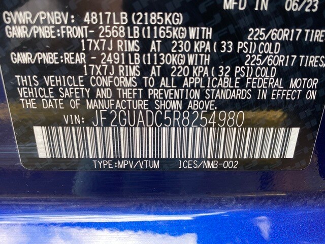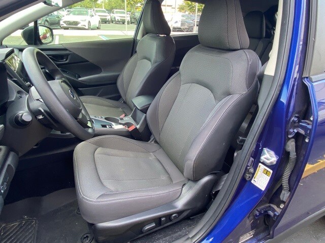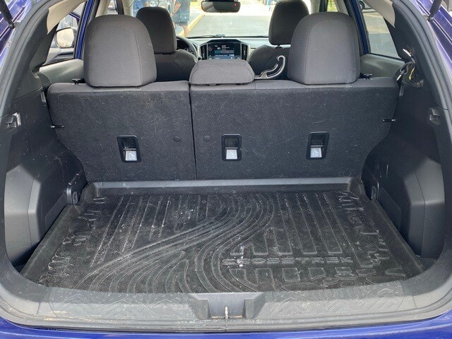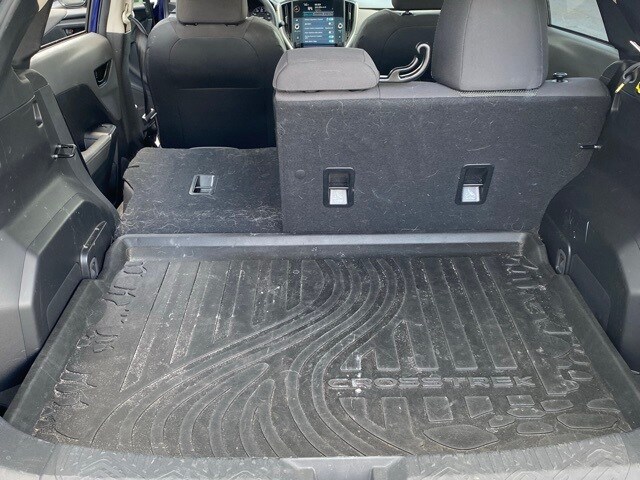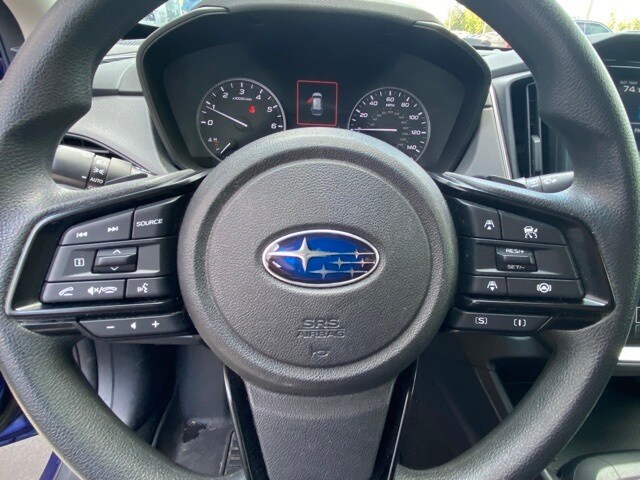 This Crosstrek is well equipped with 3.90 Axle Ratio, 4-Wheel Disc Brakes, 6 Speakers, ABS brakes, Air Conditioning, Alloy wheels, AM/FM radio: SiriusXM, Anti-whiplash front head restraints, Auto High-beam Headlights, Automatic temperature control, Brake assist, Bumpers: body-color, Driver door bin, Driver vanity mirror, Dual front impact airbags, Dual front side impact airbags, Electronic Stability Control, Emergency communication system: STARLINK Safety and Security (Subscription Required), Exterior Parking Camera Rear, Four wheel independent suspension, Front anti-roll bar, Front Bucket Seats, Front Center Armrest, Front dual zone A/C, Front fog lights, Front reading lights, Fully automatic headlights, Illuminated entry, Knee airbag, Low tire pressure warning, Occupant sensing airbag, Outside temperature display, Overhead airbag, Overhead console, Panic alarm, Passenger door bin, Passenger vanity mirror, Power door mirrors, Power steering, Power windows, Premium Cloth Upholstery, Radio data system, Radio: Subaru STARLINK 11.6" Multimedia Plus Sys, Rear anti-roll bar, Rear seat center armrest, Rear window defroster, Rear window wiper, Remote keyless entry, Security system, Speed control, Speed-sensing steering, Split folding rear seat, Spoiler, STARLINK/Apple CarPlay/Android Auto, Steering wheel mounted audio controls, Tachometer, Telescoping steering wheel, Tilt steering wheel, Traction control, Trip computer, Turn signal indicator mirrors, Variably intermittent wipers, and Wheels: 17" x 7.0J Dark Gray Aluminum Alloy.