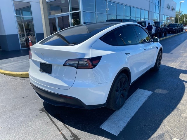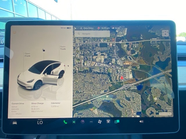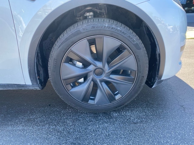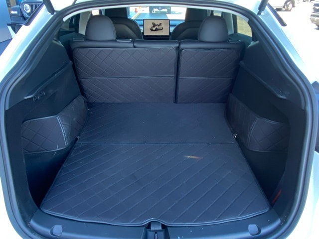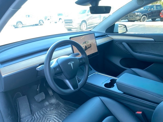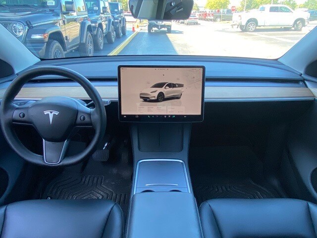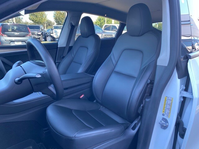 This Model Y is well equipped with 4-Wheel Disc Brakes, 5 Seat Interior, 7 Speakers, 9.0 Axle Ratio, ABS brakes, Air Conditioning, Alloy wheels, Audio memory, Auto High-beam Headlights, Auto tilt-away steering wheel, Auto-dimming door mirrors, Auto-dimming Rear-View mirror, Automatic temperature control, Brake assist, Bumpers: body-color, Compass, Delay-off headlights, Driver door bin, Driver vanity mirror, Dual front impact airbags, Dual front side impact airbags, Electronic Stability Control, Emergency communication system, Exterior Parking Camera Rear, Four wheel independent suspension, Front anti-roll bar, Front Bucket Seats, Front Center Armrest, Front dual zone A/C, Front fog lights, Front reading lights, Fully automatic headlights, Genuine wood dashboard insert, Heated door mirrors, Heated front seats, Heated rear seats, Heated steering wheel, HVAC memory, Illuminated entry, Knee airbag, Lane Departure Warning System, Low tire pressure warning, Memory seat, Navigation System, Occupant sensing airbag, Outside temperature display, Overhead airbag, Passenger door bin, Passenger vanity mirror, Power door mirrors, Power driver seat, Power Liftgate, Power passenger seat, Power steering, Power windows, Radio data system, Radio: Custom Audio System w/7 Speakers, Rain sensing wipers, Rear reading lights, Rear seat center armrest, Rear window defroster, Security system, Speed control, Speed-sensing steering, Split folding rear seat, Steering wheel memory, Steering wheel mounted A/C controls, Steering wheel mounted audio controls, Telescoping steering wheel, Tilt steering wheel, Traction control, Trip computer, Variably intermittent wipers, Vegan Leather Seat Trim, and Wheels: 19" x 9.5" Gemini Dark.