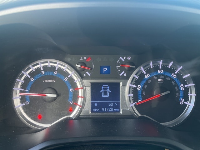 This 4Runner is well equipped with 15 Speakers, 20" x 7.5" Unique Dual 6-Spoke Alloy Wheels, 3.727 Axle Ratio, 4-Wheel Disc Brakes, ABS brakes, Air Conditioning, Alloy wheels, AM/FM radio: SiriusXM, Anti-whiplash front head restraints, Auto-Dimming Rear-View Mirror, Auto-dimming Rear-View mirror, Automatic temperature control, Body Color Heated Mirrors, Brake assist, Bumpers: body-color, CD player, Compass, Delay-off headlights, Driver door bin, Driver vanity mirror, Dual front impact airbags, Dual front side impact airbags, Electronic Stability Control, Emergency communication system: Safety Connect, Exterior Parking Camera Rear, Front anti-roll bar, Front Bucket Seats, Front Center Armrest, Front dual zone A/C, Front fog lights, Front reading lights, Front wheel independent suspension, Fully automatic headlights, Garage Door Opener, Garage door transmitter: HomeLink, Heated door mirrors, Heated front seats, Heated/Ventilated Front Bucket Seats, Illuminated entry, Knee airbag, Leather Seat Trim, Leather Shift Knob, Low tire pressure warning, Memory seat, Navigation System, Occupant sensing airbag, Outside temperature display, Overhead airbag, Overhead console, Panic alarm, Passenger door bin, Passenger vanity mirror, Power door mirrors, Power driver seat, Power moonroof, Power passenger seat, Power steering, Power Tilt & Slide Moonroof w/Sunshade, Power windows, Radio data system, Radio: Entune Premium JBL Audio w/Navigation, Rear anti-roll bar, Rear seat center armrest, Rear window defroster, Rear window wiper, Remote keyless entry, Right & Left Individual Air Conditioner, Roof rack: rails only, Security system, Speed control, Speed-sensing steering, Split folding rear seat, Spoiler, Steering wheel mounted audio controls, Tachometer, Telescoping steering wheel, Tilt steering wheel, Traction control, Trip computer, Turn signal indicator mirrors, Variably intermittent wipers, Ventilated front seats, and Voltmeter.