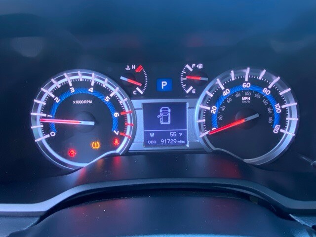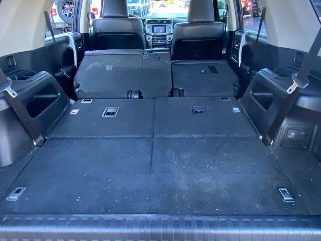 This 4Runner is well equipped with 20" x 7.5" Unique Dual 6-Spoke Alloy Wheels, ABS brakes, Alloy wheels, Body Color Heated Mirrors, Compass, Electronic Stability Control, Front dual zone A/C, Heated door mirrors, Heated front seats, Heated/Ventilated Front Bucket Seats, Illuminated entry, Leather Seat Trim, Low tire pressure warning, Power moonroof, Power Tilt & Slide Moonroof w/Sunshade, Remote keyless entry, Traction control, 15 Speakers, 3.727 Axle Ratio, 4-Wheel Disc Brakes, Air Conditioning, AM/FM radio: SiriusXM, Anti-whiplash front head restraints, Auto-Dimming Rear-View Mirror, Auto-dimming Rear-View mirror, Automatic temperature control, Brake assist, Bumpers: body-color, CD player, Delay-off headlights, Driver door bin, Driver vanity mirror, Dual front impact airbags, Dual front side impact airbags, Emergency communication system: Safety Connect, Exterior Parking Camera Rear, Front anti-roll bar, Front Bucket Seats, Front Center Armrest, Front fog lights, Front reading lights, Front wheel independent suspension, Fully automatic headlights, Garage Door Opener, Garage door transmitter: HomeLink, Knee airbag, Leather Shift Knob, Memory seat, Occupant sensing airbag, Outside temperature display, Overhead airbag, Overhead console, Panic alarm, Passenger door bin, Passenger vanity mirror, Power door mirrors, Power driver seat, Power passenger seat, Power steering, Power windows, Radio data system, Radio: Entune Premium JBL Audio w/Navigation, Rear anti-roll bar, Rear seat center armrest, Rear window defroster, Rear window wiper, Right & Left Individual Air Conditioner, Roof rack: rails only, Security system, Speed control, Speed-sensing steering, Split folding rear seat, Spoiler, Steering wheel mounted audio controls, Tachometer, Telescoping steering wheel, Tilt steering wheel, Trip computer, Turn signal indicator mirrors, Variably intermittent wipers, Ventilated front seats, and Voltmeter.