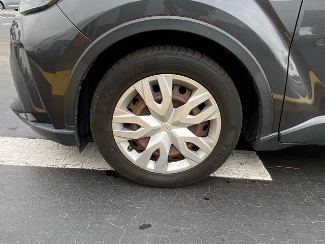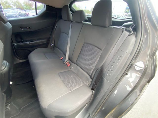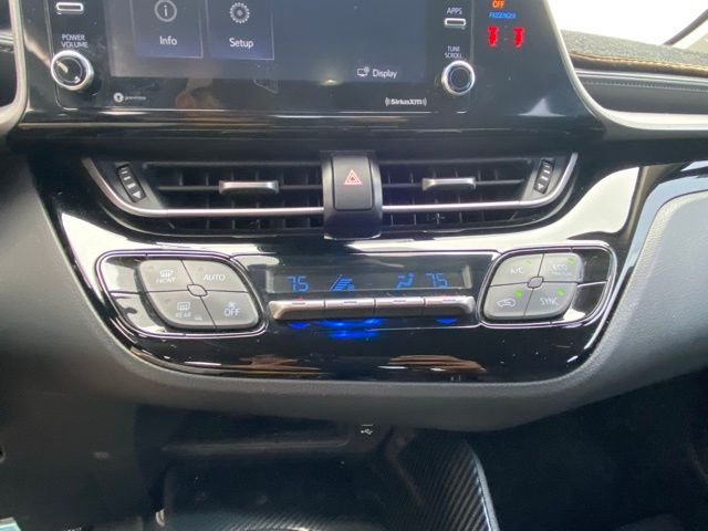 This C-HR is well equipped with 4-Wheel Disc Brakes, 6 Speakers, ABS brakes, Air Conditioning, AM/FM radio: SiriusXM, Auto High-beam Headlights, Auto-dimming Rear-View mirror, Automatic temperature control, Axle Ratio: TBD, Brake assist, Bumpers: body-color, Delay-off headlights, Driver door bin, Driver vanity mirror, Dual front impact airbags, Dual front side impact airbags, Electronic Stability Control, Emergency communication system: Safety Connect with 1-year trial, Exterior Parking Camera Rear, Four wheel independent suspension, Front anti-roll bar, Front Bucket Seats, Front Center Armrest, Front dual zone A/C, Front reading lights, Fully automatic headlights, Heated door mirrors, Illuminated entry, Knee airbag, Leather Shift Knob, Low tire pressure warning, Occupant sensing airbag, Outside temperature display, Overhead airbag, Panic alarm, Passenger door bin, Passenger vanity mirror, Power door mirrors, Power steering, Power windows, Radio data system, Radio: AM/FM Stereo w/8" Touch-Screen Display, Rear anti-roll bar, Rear side impact airbag, Rear window defroster, Rear window wiper, Remote keyless entry, Speed control, Speed-sensing steering, Split folding rear seat, Spoiler, Steering wheel mounted audio controls, Tachometer, Telescoping steering wheel, Tilt steering wheel, Traction control, Trip computer, Turn signal indicator mirrors, and Variably intermittent wipers.