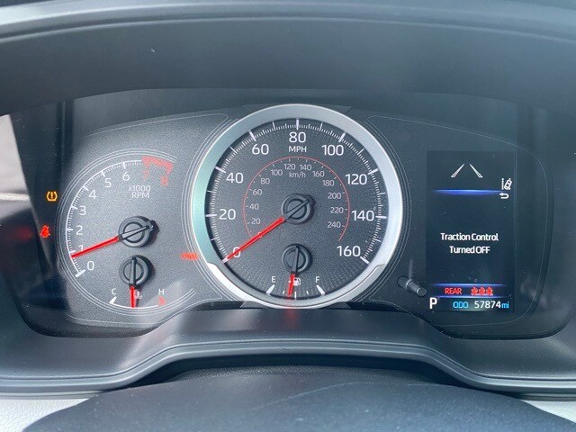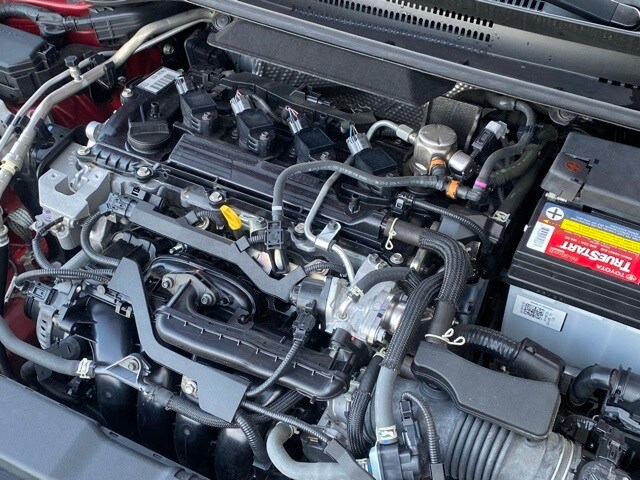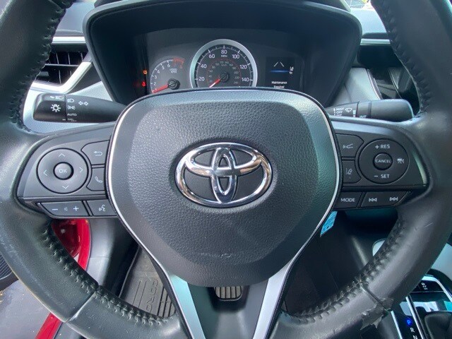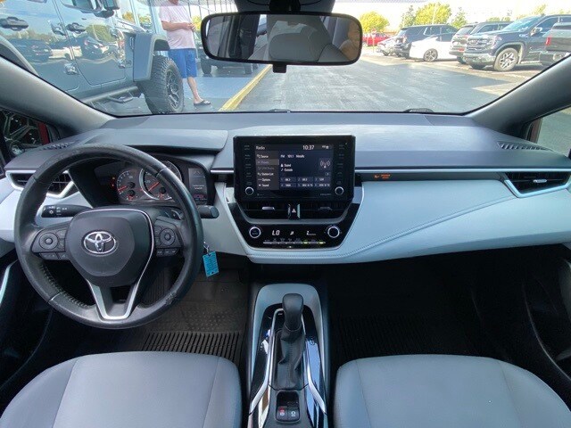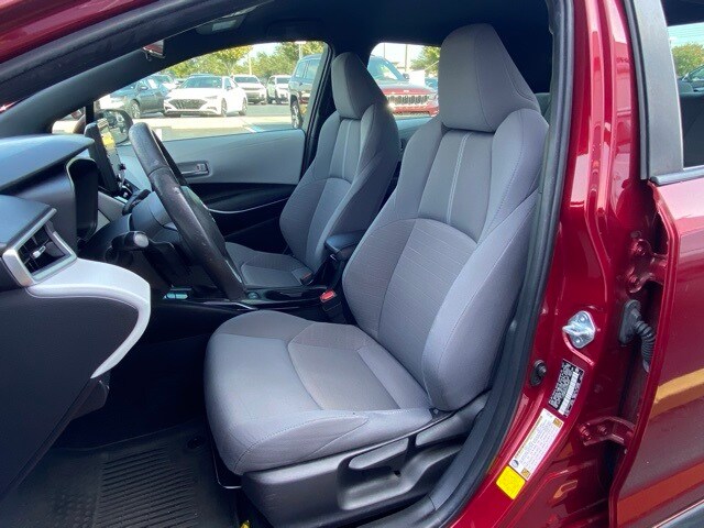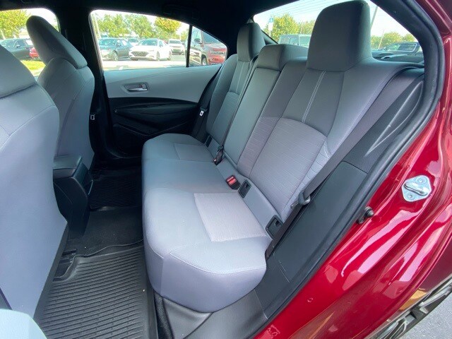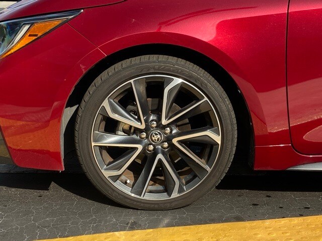 This Corolla is well equipped with 18" Machined Alloy Wheels, 4-Wheel Disc Brakes, 6 Speakers, ABS brakes, Air Conditioning, Alloy wheels, AM/FM radio: SiriusXM, Apple CarPlay/Android Auto, Auto High-beam Headlights, Automatic temperature control, Brake assist, Bumpers: body-color, Delay-off headlights, Driver door bin, Driver vanity mirror, Dual front impact airbags, Dual front side impact airbags, Electronic Stability Control, Emergency communication system: Safety Connect with 1-year trial, Exterior Parking Camera Rear, Four wheel independent suspension, Front anti-roll bar, Front Bucket Seats, Front Center Armrest, Front reading lights, Front Sport Seats, Fully automatic headlights, Heated door mirrors, Illuminated entry, Knee airbag, Leather Shift Knob, Low tire pressure warning, Occupant sensing airbag, Outside temperature display, Overhead airbag, Panic alarm, Passenger door bin, Passenger vanity mirror, Power door mirrors, Power steering, Power windows, Premium Fabric Seat Trim, Radio data system, Radio: Audio, Rear anti-roll bar, Rear seat center armrest, Rear side impact airbag, Rear window defroster, Remote keyless entry, Security system, Speed control, Split folding rear seat, Spoiler, Steering wheel mounted audio controls, Tachometer, Telescoping steering wheel, Tilt steering wheel, Traction control, Trip computer, Turn signal indicator mirrors, and Variably intermittent wipers.
