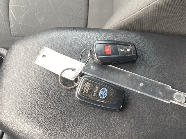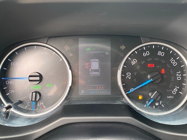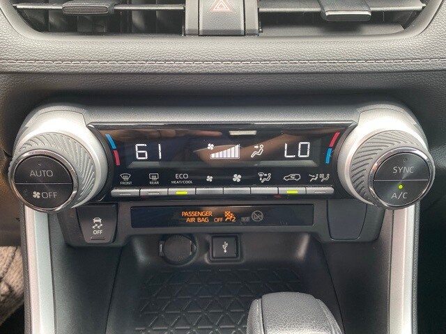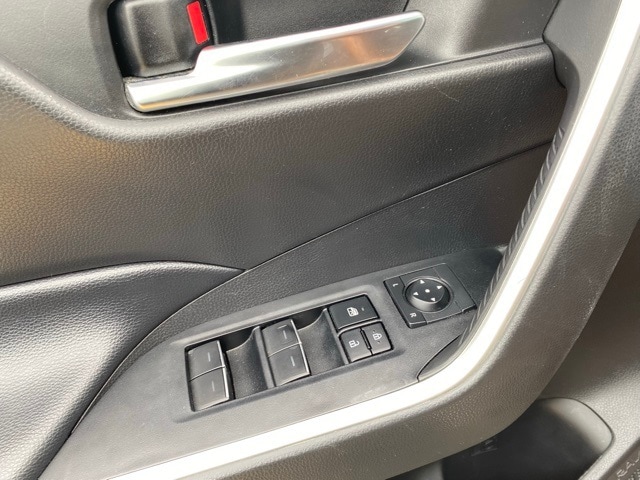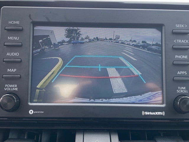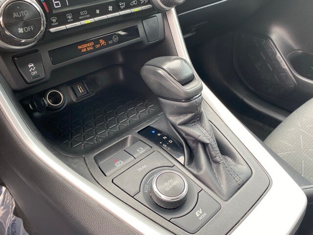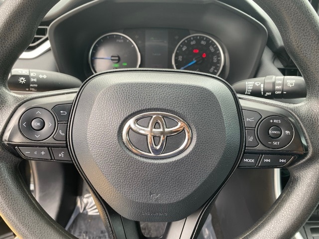 This RAV4 Hybrid is well equipped with 4-Wheel Disc Brakes, 6 Speakers, ABS brakes, Air Conditioning, Alloy wheels, AM/FM radio: SiriusXM, AM/FM Stereo, Apple CarPlay/Android Auto, Auto High-beam Headlights, Automatic temperature control, Axle Ratio: TBD, Brake assist, Bumpers: body-color, Delay-off headlights, Driver door bin, Driver vanity mirror, Dual front impact airbags, Dual front side impact airbags, Electronic Stability Control, Emergency communication system: Safety Connect with 1-year trial, Exterior Parking Camera Rear, Fabric Seat Trim (FA), Four wheel independent suspension, Front anti-roll bar, Front Bucket Seats, Front Center Armrest, Front dual zone A/C, Front fog lights, Front reading lights, Front Sport Seats, Fully automatic headlights, Heated door mirrors, Illuminated entry, Knee airbag, Lane Departure Warning System, Low tire pressure warning, Occupant sensing airbag, Outside temperature display, Overhead airbag, Overhead console, Panic alarm, Passenger door bin, Passenger vanity mirror, Power door mirrors, Power driver seat, Power steering, Power windows, Radio data system, Rear anti-roll bar, Rear seat center armrest, Rear window defroster, Rear window wiper, Remote keyless entry, Roof rack: rails only, Speed control, Speed-sensing steering, Split folding rear seat, Spoiler, Steering wheel mounted audio controls, Telescoping steering wheel, Tilt steering wheel, Traction control, Trip computer, Turn signal indicator mirrors, Variably intermittent wipers, and Wheels: 17" x 7.0J Silver Aluminum Alloy.