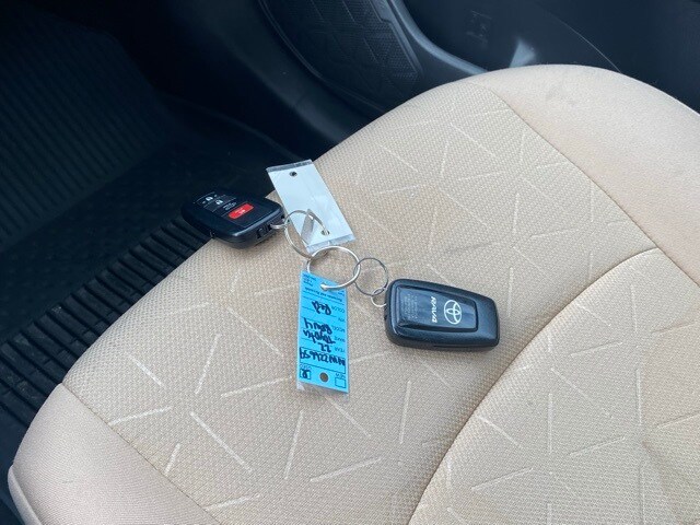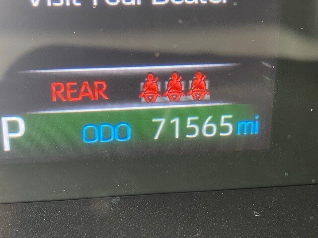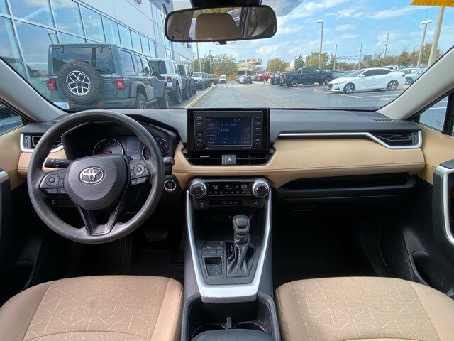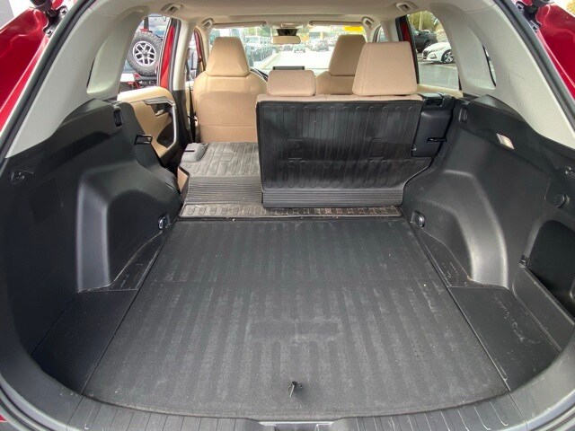 This RAV4 is well equipped with 4-Wheel Disc Brakes, 6 Speakers, ABS brakes, Air Conditioning, Alloy wheels, AM/FM radio: SiriusXM, AM/FM Stereo, Apple CarPlay/Android Auto, Auto High-beam Headlights, Automatic temperature control, Axle Ratio: 3.177, Brake assist, Bumpers: body-color, Delay-off headlights, Driver door bin, Driver vanity mirror, Dual front impact airbags, Dual front side impact airbags, Electronic Stability Control, Emergency communication system: Safety Connect with 1-year trial, Exterior Parking Camera Rear, Fabric Seat Trim, Four wheel independent suspension, Front anti-roll bar, Front Bucket Seats, Front Center Armrest, Front dual zone A/C, Front reading lights, Fully automatic headlights, Heated door mirrors, Illuminated entry, Knee airbag, Low tire pressure warning, Occupant sensing airbag, Outside temperature display, Overhead airbag, Overhead console, Panic alarm, Passenger door bin, Passenger vanity mirror, Power door mirrors, Power driver seat, Power steering, Power windows, Radio data system, Rear anti-roll bar, Rear seat center armrest, Rear window defroster, Rear window wiper, Remote keyless entry, Roof rack: rails only, Speed control, Speed-sensing steering, Split folding rear seat, Spoiler, Steering wheel mounted audio controls, Tachometer, Telescoping steering wheel, Tilt steering wheel, Traction control, Trip computer, Turn signal indicator mirrors, Variably intermittent wipers, and Wheels: 17" 5-Spoke Silver Alloy.