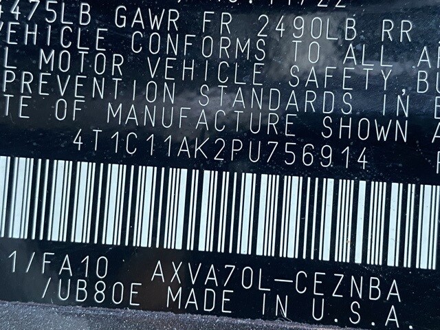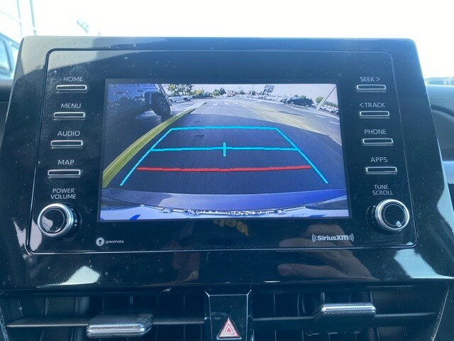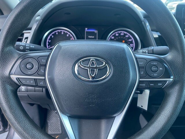 This Camry is well equipped with 4-Wheel Disc Brakes, 6 Speakers, 7.5J x 17" Alloy Wheels, ABS brakes, Air Conditioning, Alloy wheels, AM/FM radio: SiriusXM, Apple CarPlay/Android Auto, Auto High-beam Headlights, Automatic temperature control, Brake assist, Bumpers: body-color, Delay-off headlights, Driver door bin, Driver vanity mirror, Dual front impact airbags, Dual front side impact airbags, Electronic Stability Control, Emergency communication system: Safety Connect (1-year trial), Exterior Parking Camera Rear, Fabric Seat Trim, Four wheel independent suspension, Front anti-roll bar, Front Bucket Seats, Front Center Armrest, Front dual zone A/C, Front reading lights, Fully automatic headlights, Illuminated entry, Knee airbag, Low tire pressure warning, Occupant sensing airbag, Outside temperature display, Overhead airbag, Overhead console, Panic alarm, Passenger door bin, Passenger vanity mirror, Power door mirrors, Power driver seat, Power steering, Power windows, Radio data system, Radio: Audio, Rear anti-roll bar, Rear seat center armrest, Rear side impact airbag, Rear window defroster, Remote keyless entry, Security system, Speed control, Speed-sensing steering, Split folding rear seat, Steering wheel mounted audio controls, Tachometer, Telescoping steering wheel, Tilt steering wheel, Traction control, Trip computer, and Variably intermittent wipers.