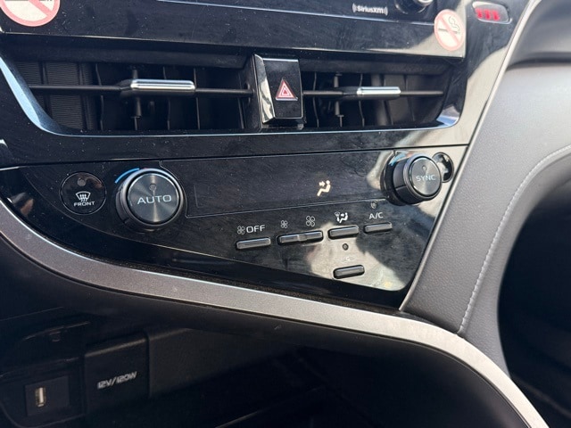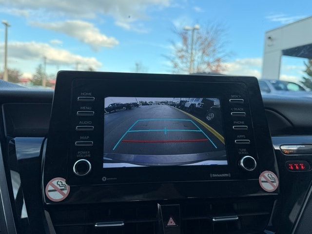 This Camry is well equipped with ABS brakes, Active Cruise Control, Alloy wheels, Electronic Stability Control, Front dual zone A/C, Heated door mirrors, Illuminated entry, Low tire pressure warning, Remote keyless entry, Traction control, 4-Wheel Disc Brakes, 6 Speakers, 8.0J x 18" Alloy Wheels, Air Conditioning, AM/FM radio: SiriusXM, Apple CarPlay/Android Auto, Auto High-beam Headlights, Automatic temperature control, Brake assist, Bumpers: body-color, Delay-off headlights, Driver door bin, Driver vanity mirror, Dual front impact airbags, Dual front side impact airbags, Emergency communication system: Safety Connect (1-year trial), Exterior Parking Camera Rear, Four wheel independent suspension, Front anti-roll bar, Front Bucket Seats, Front Center Armrest, Front reading lights, Fully automatic headlights, Knee airbag, Leather steering wheel, Occupant sensing airbag, Outside temperature display, Overhead airbag, Overhead console, Panic alarm, Passenger door bin, Passenger vanity mirror, Power door mirrors, Power driver seat, Power steering, Power windows, Radio data system, Radio: Audio, Rear anti-roll bar, Rear seat center armrest, Rear side impact airbag, Rear window defroster, Security system, Speed control, Speed-sensing steering, Split folding rear seat, Spoiler, Sport SofTex Seat Trim w/Fabric Inserts, Steering wheel mounted audio controls, Tachometer, Telescoping steering wheel, Tilt steering wheel, Trip computer, Turn signal indicator mirrors, and Variably intermittent wipers.