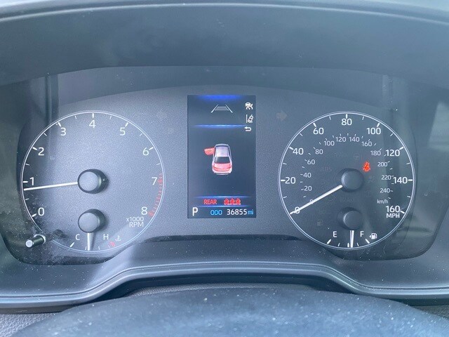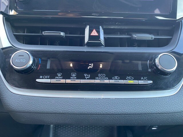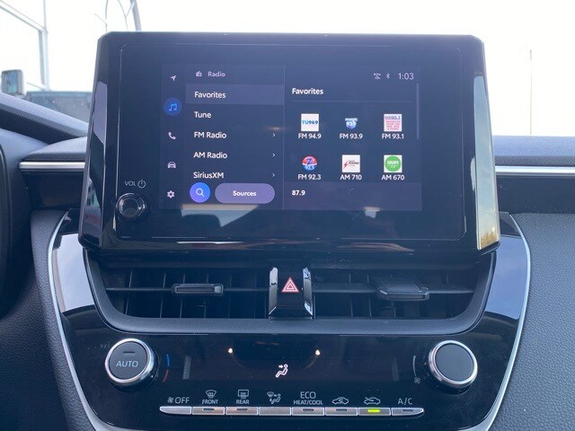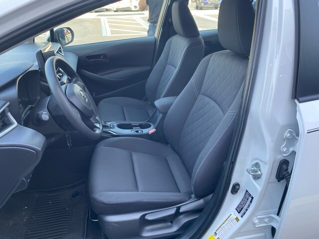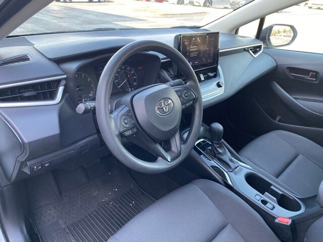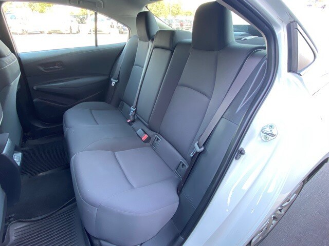 This Corolla is well equipped with 4-Wheel Disc Brakes, 6 Speakers, ABS brakes, Air Conditioning, AM/FM radio: SiriusXM, Auto High-beam Headlights, Automatic temperature control, Brake assist, Bumpers: body-color, Delay-off headlights, Driver door bin, Driver vanity mirror, Dual front impact airbags, Dual front side impact airbags, Electronic Stability Control, Emergency communication system: Safety Connect (up to 10-year trial subscription), Exterior Parking Camera Rear, Front anti-roll bar, Front Bucket Seats, Front Center Armrest, Front reading lights, Front wheel independent suspension, Fully automatic headlights, Illuminated entry, Knee airbag, Low tire pressure warning, Occupant sensing airbag, Outside temperature display, Overhead airbag, Panic alarm, Passenger door bin, Passenger vanity mirror, Power door mirrors, Power steering, Power windows, Premium Fabric Seat Trim, Radio data system, Radio: 8" Toyota Audio Multimedia, Rear anti-roll bar, Rear seat center armrest, Rear side impact airbag, Rear window defroster, Remote keyless entry, Speed control, Split folding rear seat, Steering wheel mounted audio controls, Tachometer, Telescoping steering wheel, Tilt steering wheel, Traction control, Trip computer, Variably intermittent wipers, and Wheels: 16" Wide Vent Steel.