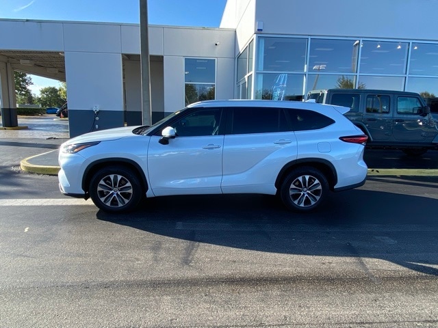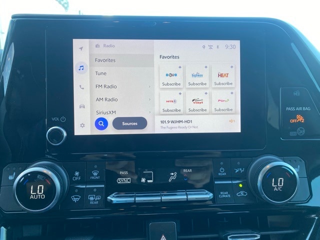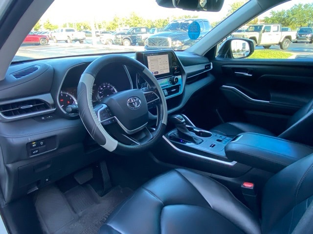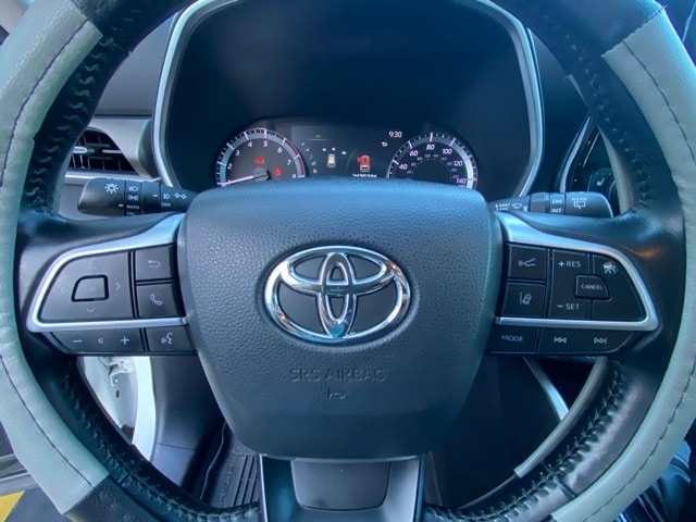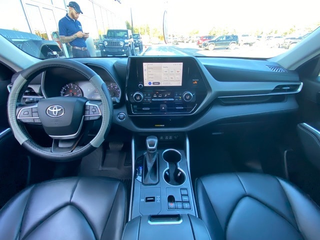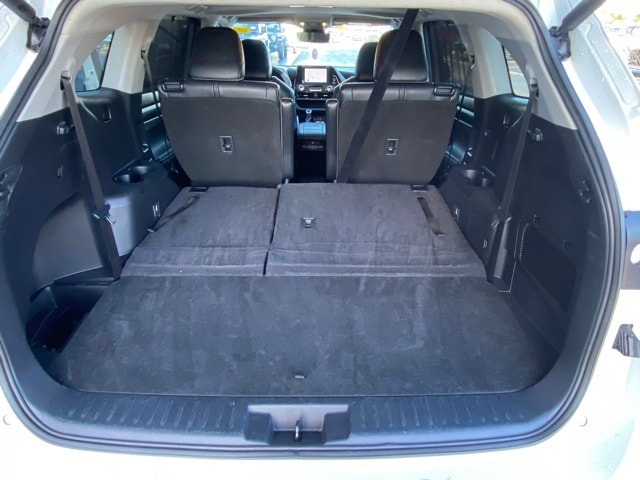This Highlander is well equipped with ABS brakes, Active Cruise Control, Alloy wheels, Electronic Stability Control, Front dual zone A/C, Heated door mirrors, Heated Front Bucket Seats, Heated front seats, Illuminated entry, Low tire pressure warning, Power Liftgate, Power moonroof, Remote keyless entry, Traction control, 3.329 Axle Ratio, 3rd row seats: split-bench, 4-Wheel Disc Brakes, 6 Speakers, Air Conditioning, AM/FM radio: SiriusXM, Apple CarPlay/Android Auto, Auto High-beam Headlights, Auto-dimming Rear-View mirror, Automatic temperature control, Bodyside moldings, Brake assist, Bumpers: body-color, Delay-off headlights, Driver door bin, Driver vanity mirror, Dual front impact airbags, Dual front side impact airbags, Emergency communication system: Safety Connect (up to 10-year trial subscription), Exterior Parking Camera Rear, Four wheel independent suspension, Front anti-roll bar, Front Bucket Seats, Front Center Armrest, Front fog lights, Front reading lights, Fully automatic headlights, Garage door transmitter: HomeLink, Knee airbag, Leather Shift Knob, Leather steering wheel, Mixed Media Seat Trim, Occupant sensing airbag, Outside temperature display, Overhead airbag, Overhead console, Panic alarm, Passenger door bin, Passenger vanity mirror, Power door mirrors, Power driver seat, Power passenger seat, Power steering, Power windows, Radio: 8" Toyota Audio Multimedia, Rear air conditioning, Rear anti-roll bar, Rear reading lights, Rear window defroster, Rear window wiper, Reclining 3rd row seat, Roof rack: rails only, Security system, Speed control, Speed-sensing steering, Split folding rear seat, Spoiler, Steering wheel mounted audio controls, Tachometer, Telescoping steering wheel, Tilt steering wheel, Trip computer, Turn signal indicator mirrors, Variably intermittent wipers, and Wheels: 20" Machined-Face Black Painted Alloy.