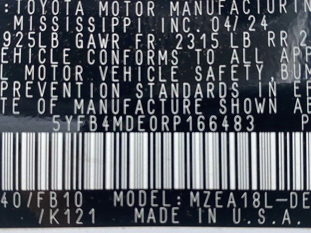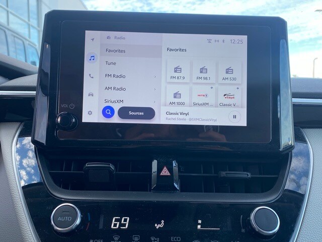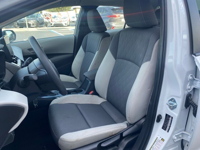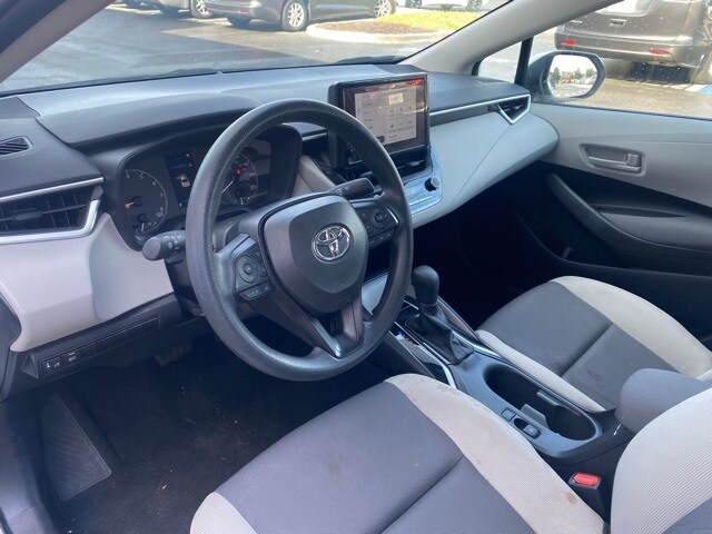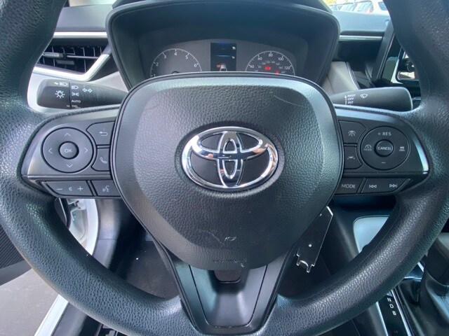 This Corolla is well equipped with 16" Steel Wheels w/Covers, 4-Wheel Disc Brakes, 6 Speakers, ABS brakes, Air Conditioning, AM/FM radio: SiriusXM, Auto High-beam Headlights, Automatic temperature control, Brake assist, Bumpers: body-color, Delay-off headlights, Driver door bin, Driver vanity mirror, Dual front impact airbags, Dual front side impact airbags, Electronic Stability Control, Emergency communication system: Safety Connect (up to 10-year trial subscription), Exterior Parking Camera Rear, Fabric Seat Trim, Front anti-roll bar, Front Bucket Seats, Front Center Armrest, Front reading lights, Front wheel independent suspension, Fully automatic headlights, Illuminated entry, Knee airbag, Low tire pressure warning, Occupant sensing airbag, Outside temperature display, Overhead airbag, Panic alarm, Passenger door bin, Passenger vanity mirror, Power door mirrors, Power steering, Power windows, Radio data system, Radio: 8" Toyota Audio Multimedia, Rear anti-roll bar, Rear seat center armrest, Rear side impact airbag, Rear window defroster, Remote keyless entry, Speed control, Split folding rear seat, Steering wheel mounted audio controls, Tachometer, Telescoping steering wheel, Tilt steering wheel, Traction control, and Trip computer.