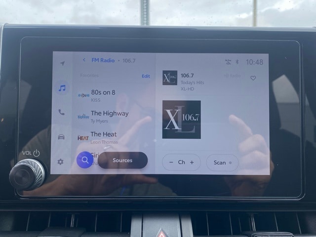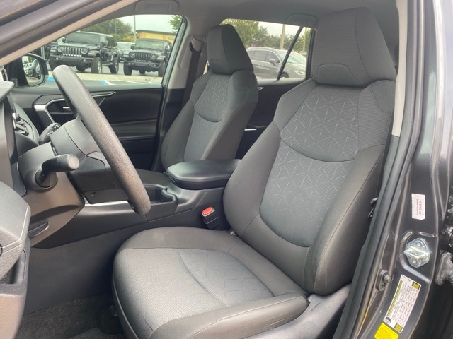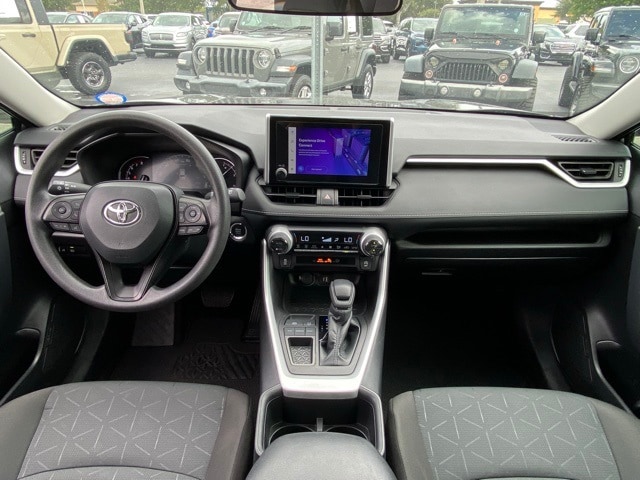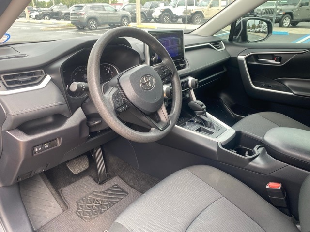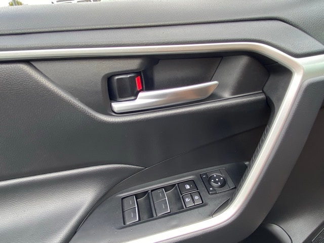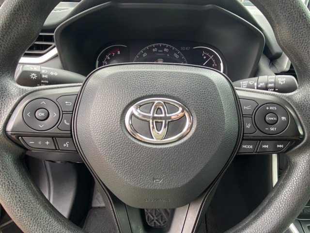 This RAV4 is well equipped with 4-Wheel Disc Brakes, 6 Speakers, ABS brakes, Air Conditioning, Alloy wheels, AM/FM radio: SiriusXM, Auto High-beam Headlights, Automatic temperature control, Axle Ratio: 3.177, Brake assist, Bumpers: body-color, Delay-off headlights, Driver door bin, Driver vanity mirror, Dual front impact airbags, Dual front side impact airbags, Electronic Stability Control, Emergency communication system: Safety Connect (10-year trial), Exterior Parking Camera Rear, Fabric Seat Trim, Four wheel independent suspension, Front anti-roll bar, Front Bucket Seats, Front Center Armrest, Front dual zone A/C, Front reading lights, Fully automatic headlights, Heated door mirrors, Illuminated entry, Knee airbag, Low tire pressure warning, Occupant sensing airbag, Outside temperature display, Overhead airbag, Overhead console, Panic alarm, Passenger door bin, Passenger vanity mirror, Power door mirrors, Power driver seat, Power steering, Power windows, Radio data system, Radio: AM/FM/XM Audio System, Rear anti-roll bar, Rear seat center armrest, Rear window defroster, Rear window wiper, Remote keyless entry, Speed control, Speed-sensing steering, Split folding rear seat, Spoiler, Steering wheel mounted audio controls, Tachometer, Telescoping steering wheel, Tilt steering wheel, Traction control, Trip computer, Turn signal indicator mirrors, Variably intermittent wipers, and Wheels: 17" 5-Spoke Silver Alloy.
