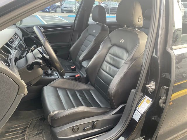 This Golf R is well equipped with Driver Assistance Package (High Beam Control (Light Assist), Lane Departure Warning System (Lane Assist), and Park Distance Control (Park Pilot) Front & Rear), 4-Wheel Disc Brakes, 9 Speakers, ABS brakes, Adaptive suspension, Air Conditioning, Alloy wheels, AM/FM radio: SiriusXM, Anti-whiplash front head restraints, Auto High-beam Headlights, Auto-dimming Rear-View mirror, Automatic temperature control, Brake assist, Bumpers: body-color, Carpeted Mats Kit, CD player, Compass, Driver door bin, Driver vanity mirror, Dual front impact airbags, Dual front side impact airbags, Electronic Stability Control, Emergency communication system: VW Car-Net, Exterior Parking Camera Rear, Four wheel independent suspension, Front anti-roll bar, Front Bucket Seats, Front Center Armrest, Front dual zone A/C, Front reading lights, Fully automatic headlights, Heated door mirrors, Heated front seats, Heated Top Sport Front Seats, High intensity discharge headlights: Bi-Xenon, Illuminated entry, Leather Seating Surfaces, Leather Shift Knob, Low tire pressure warning, Navigation System, Occupant sensing airbag, Outside temperature display, Overhead airbag, Overhead console, Panic alarm, Passenger door bin, Passenger vanity mirror, Power door mirrors, Power driver seat, Power passenger seat, Power steering, Power windows, Radio data system, Radio: Discover Media w/6.5" Touchscreen Nav, Rain sensing wipers, Rear anti-roll bar, Rear reading lights, Rear seat center armrest, Rear window defroster, Rear window wiper, Remote keyless entry, Roadside Assistance Kit, Security system, Speed control, Speed-sensing steering, Speed-Sensitive Wipers, Split folding rear seat, Spoiler, Sport steering wheel, Steering wheel mounted audio controls, Tachometer, Telescoping steering wheel, Tilt steering wheel, Traction control, Trip computer, Turn signal indicator mirrors, Variably intermittent wipers, and Wheels: 19" Pretoria Alloy.