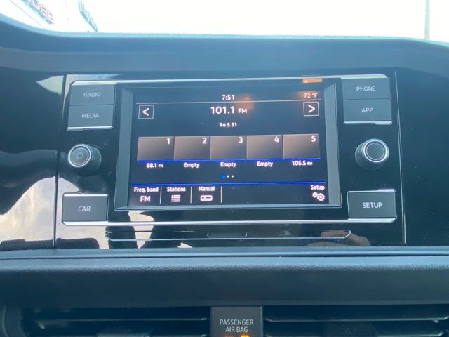 This Jetta is well equipped with 4 Speakers, 4-Wheel Disc Brakes, ABS brakes, Air Conditioning, Alloy wheels, AM/FM radio, Automatic temperature control, Brake assist, Bumpers: body-color, Delay-off headlights, Driver door bin, Driver vanity mirror, Dual front impact airbags, Dual front side impact airbags, Electronic Stability Control, Exterior Parking Camera Rear, Front anti-roll bar, Front Bucket Seats, Front Center Armrest, Front dual zone A/C, Front fog lights, Front reading lights, Front wheel independent suspension, Fully automatic headlights, Heated door mirrors, Heated Front Comfort Seats, Heated front seats, Illuminated entry, Leather Shift Knob, Low tire pressure warning, Occupant sensing airbag, Outside temperature display, Overhead airbag, Overhead console, Panic alarm, Passenger door bin, Passenger vanity mirror, Perforated V-Tex Leatherette Seat Trim, Power door mirrors, Power moonroof, Power steering, Power windows, Radio data system, Radio: Composition Color w/6.5" Touchscreen, Rear anti-roll bar, Rear reading lights, Rear seat center armrest, Rear window defroster, Remote keyless entry, Speed control, Speed-sensing steering, Split folding rear seat, Steering wheel mounted audio controls, Tachometer, Telescoping steering wheel, Tilt steering wheel, Traction control, Trip computer, Variably intermittent wipers, and Wheels: 17" Trenton.