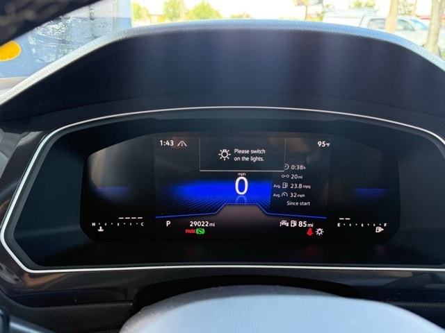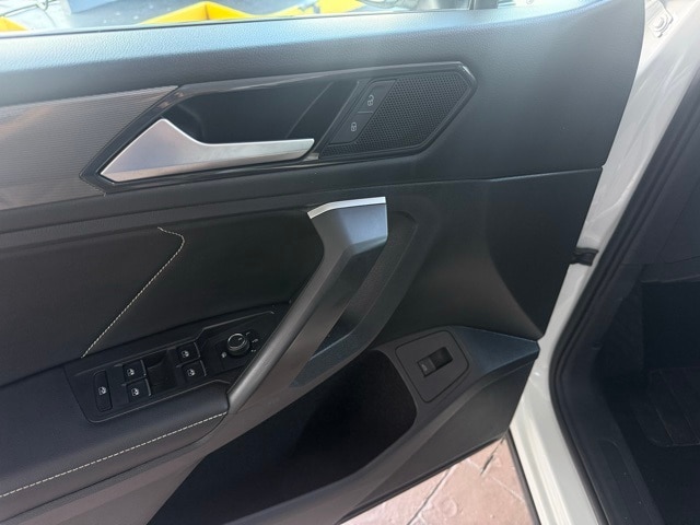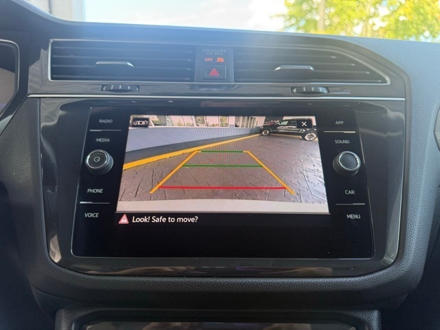 This Tiguan is well equipped with 3.33 Axle Ratio, 4-Wheel Disc Brakes, 4-Wheel Independent Suspension, 6 Speakers, ABS brakes, Air Conditioning, Alloy wheels, AM/FM radio: SiriusXM with 360L, Auto-dimming Rear-View mirror, Automatic temperature control, Brake assist, Bumpers: body-color, Compass, Delay-off headlights, Driver door bin, Driver vanity mirror, Dual front impact airbags, Dual front side impact airbags, Electronic Stability Control, Emergency communication system: VW Car-Net Safe & Secure 5-year, Exterior Parking Camera Rear, Four wheel independent suspension, Front anti-roll bar, Front Bucket Seats, Front Center Armrest, Front dual zone A/C, Front reading lights, Fully automatic headlights, Heated door mirrors, Heated Front Seats, Heated front seats, Illuminated entry, Leather Shift Knob, Low tire pressure warning, Occupant sensing airbag, Outside temperature display, Overhead airbag, Overhead console, Panic alarm, Passenger door bin, Passenger vanity mirror, Perforated V-Tex Leatherette Seating Surfaces, Power door mirrors, Power driver seat, Power Liftgate, Power steering, Power windows, Radio data system, Radio: MIB3 Composition Media AM/FM/HD, Rain sensing wipers, Rear anti-roll bar, Rear reading lights, Rear seat center armrest, Rear window defroster, Rear window wiper, Remote keyless entry, Security system, Speed control, Speed-sensing steering, Split folding rear seat, Spoiler, Steering wheel mounted audio controls, Tachometer, Telescoping steering wheel, Tilt steering wheel, Traction control, Trip computer, Turn signal indicator mirrors, Variably intermittent wipers, and Wheels: 18" Dark Graphite Painted 10-Spoke Alloy.
