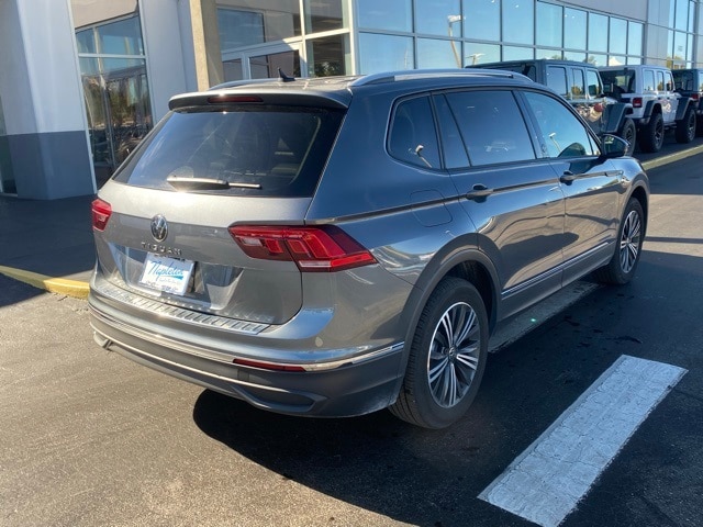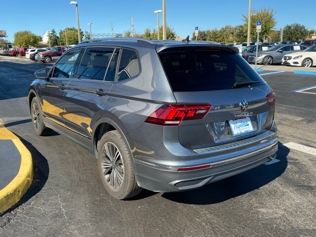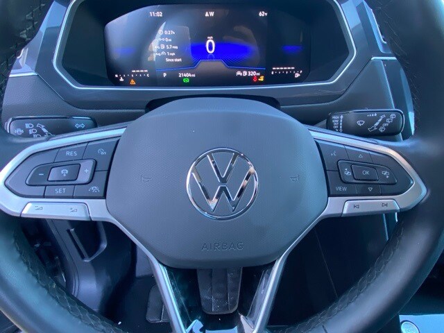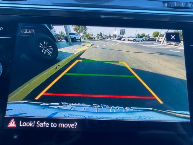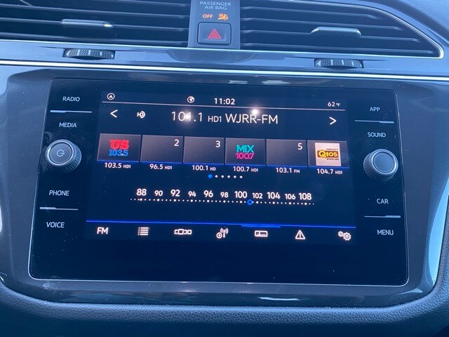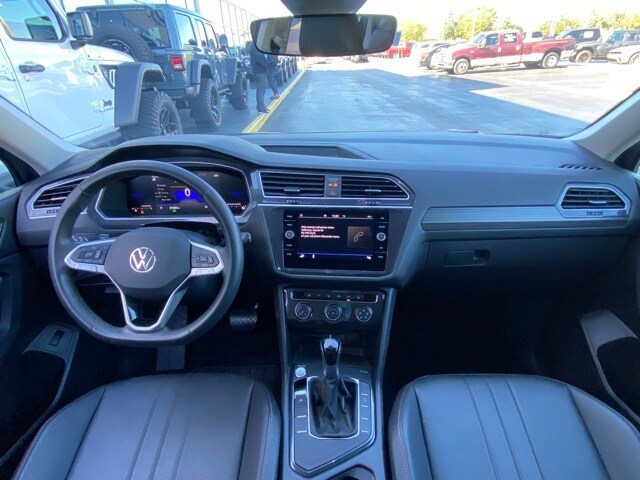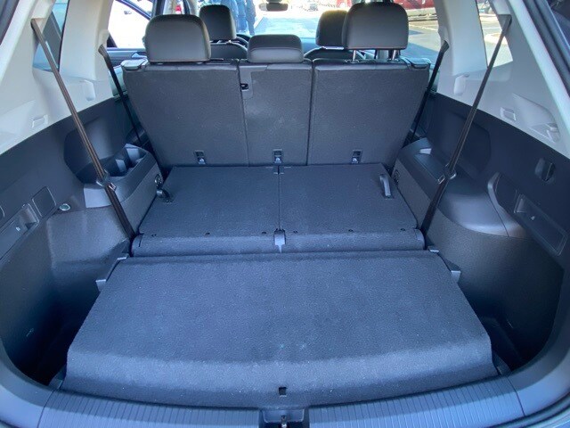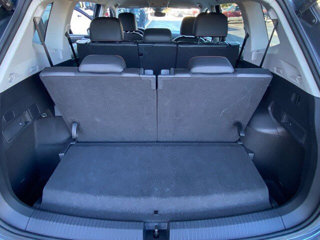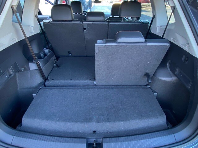 This Tiguan is well equipped with 3.33 Axle Ratio, 3rd row seats: bench, 4-Wheel Disc Brakes, 4-Wheel Independent Suspension, 6 Speakers, ABS brakes, Air Conditioning, Alloy wheels, AM/FM radio: SiriusXM with 360L, Auto-dimming Rear-View mirror, Automatic temperature control, Brake assist, Bumpers: body-color, Compass, Delay-off headlights, Driver door bin, Driver vanity mirror, Dual front impact airbags, Dual front side impact airbags, Electronic Stability Control, Emergency communication system: VW Car-Net Safe & Secure 5-year, Exterior Parking Camera Rear, Four wheel independent suspension, Front anti-roll bar, Front Bucket Seats, Front Center Armrest, Front dual zone A/C, Front reading lights, Fully automatic headlights, Heated door mirrors, Heated Front Seats, Heated front seats, Illuminated entry, Leather Shift Knob, Low tire pressure warning, Occupant sensing airbag, Outside temperature display, Overhead airbag, Overhead console, Panic alarm, Passenger door bin, Passenger vanity mirror, Perforated V-Tex Leatherette Seating Surfaces, Power door mirrors, Power driver seat, Power Liftgate, Power steering, Power windows, Radio data system, Radio: MIB3 Composition Media AM/FM/HD, Rain sensing wipers, Rear anti-roll bar, Rear reading lights, Rear seat center armrest, Rear window defroster, Rear window wiper, Remote keyless entry, Security system, Speed control, Speed-sensing steering, Split folding rear seat, Spoiler, Steering wheel mounted audio controls, Tachometer, Telescoping steering wheel, Tilt steering wheel, Traction control, Trip computer, Turn signal indicator mirrors, Variably intermittent wipers, and Wheels: 18" Dark Graphite Painted 10-Spoke Alloy.